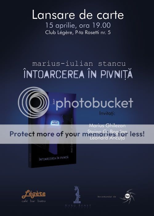 Editura Herg Benet vă invită vineri, 15 aprilie, de la ora 19, la Cafe Légère din Piața Rosetti nr. 5 (lângă Hotel Banat) pentru lansarea volumului de versuri „întoarcerea în pivniță” de Marius-Iulian Stancu.