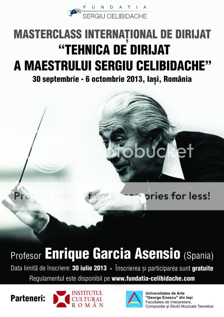 Fundaţia Sergiu Celibidache din Bucureşti, în parteneriat cu Institutul Cultural Român şi cu Universitatea de Arte „George Enescu” – Facultatea de Interpretare, Compoziţie şi Studii Muzicale Teoretice, din Iaşi, va organiza, în perioada 30 septembrie – 6 octombrie 2013, Masterclass-ul Internaţional de Dirijat „Tehnica de dirijat a Maestrului Sergiu Celibidache”, susţinut de către profesorul Enrique Garcia Asensio, cel mai bun elev a lui Sergiu Celibidache.