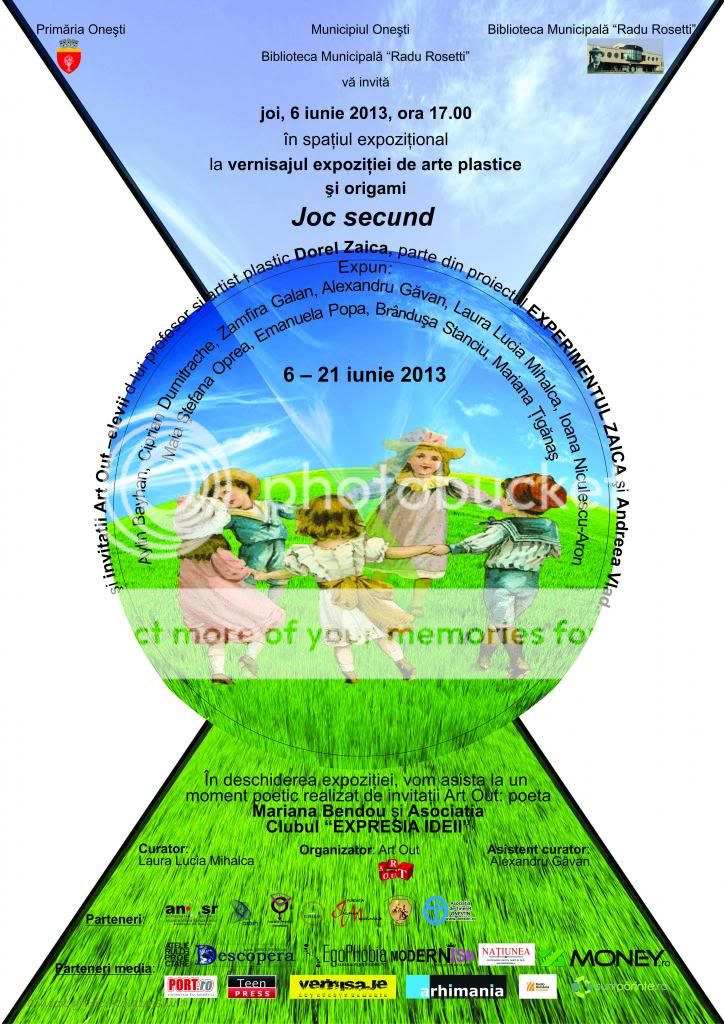 Oneşti, 5 iunie 2013: Biblioteca Municipală « Radu Rosetti » şi Art Out au vernisat expoziţia colectivă de arte plastice şi origami Joc Secund. Evenimentul a avut loc joi, 6 iunie 2013, ora 17.00, în spaţiul expoziţional al bibliotecii din B-dul Oituz, nr. 13A.
