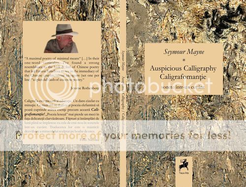 Duminica 1 iunie, ora 13, Bookfest, standul Editurii Tracus Arte – Lansare de carte, Auspicious Calligraphy. Word Sonnets / Caligrafomantie. Sonete intr-un cuvant, de Seymour Mayne, traducere de Raluca si Chris Tanasescu (MARGENTO); prezinta: Ion Bogdan Lefter, Felix Nicolau si Cosmin Perta; lectura bilingva de Seymour Mayne si MARGENTO.