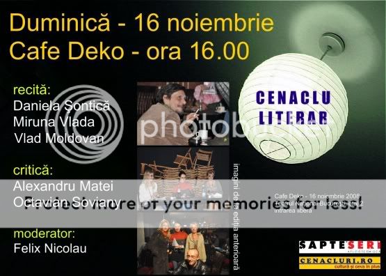Cenaclu literar, duminica, 16 noiembrie 2008, ora 16:00